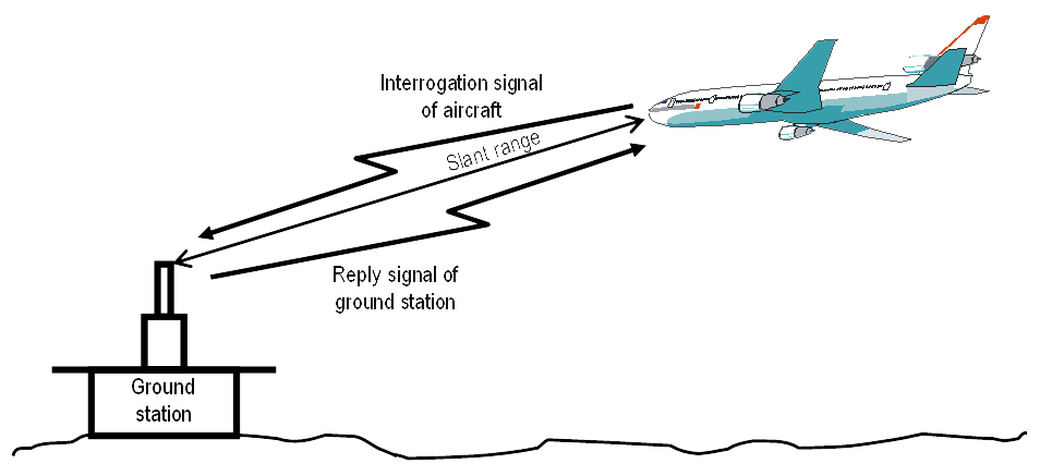 DME 系統的運作基於飛機上的詢問器與地面站應答器之間精密的問答互動,飛機的詢問器會發射成對的射頻 (RF) 脈衝,稱為雙脈衝,地面站的應答器接收到這些詢問訊號後,會經過一段精確定義的延遲時間,稱為主延遲或應答延遲 (Main/Reply Delay),然後再將脈衝回傳給飛機;飛機上的接收機透過量測從發射脈衝到接收到回覆脈衝的總往返時間 (Round Trip Time),並減去地面站已知的固定延遲時間,即可精確計算出飛機與地面站之間的斜距;此方法的技術規範與標準由國際民航組織 (International Civil Aviation Organization, ICAO) 的附件 (Annex 10) 以及歐洲民航電子設備組織 (European Organization for Civil Aviation Electronics, EUROCAE) 的 ED-57 文件所定義。