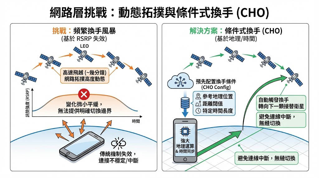 網路層挑戰:動態拓撲與條件式換手 (CHO)