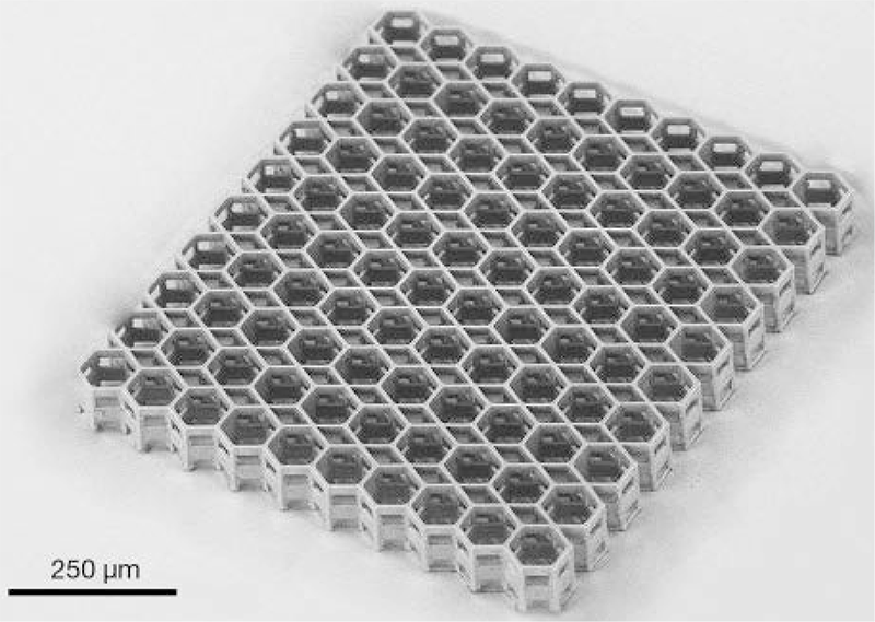 解析度高達 150 nm 的多光子聚合技術,能夠製造出具有次微米尺寸單元的鷹架狀結構。