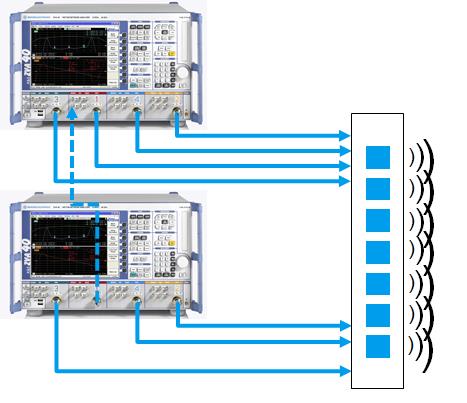 R&S®ZVA 在「定義相干模式」下,可透過電子方式於傳統 S 參數量測模式與波束成形量測模式之間切換,因此可在天線的單次連接周期內,高效地完成 S 參數與波束成形量測,多台 VNA 亦可採用串接(daisy-chain)方式連接,以擴展此概念,從而支援任意數量的連接埠。