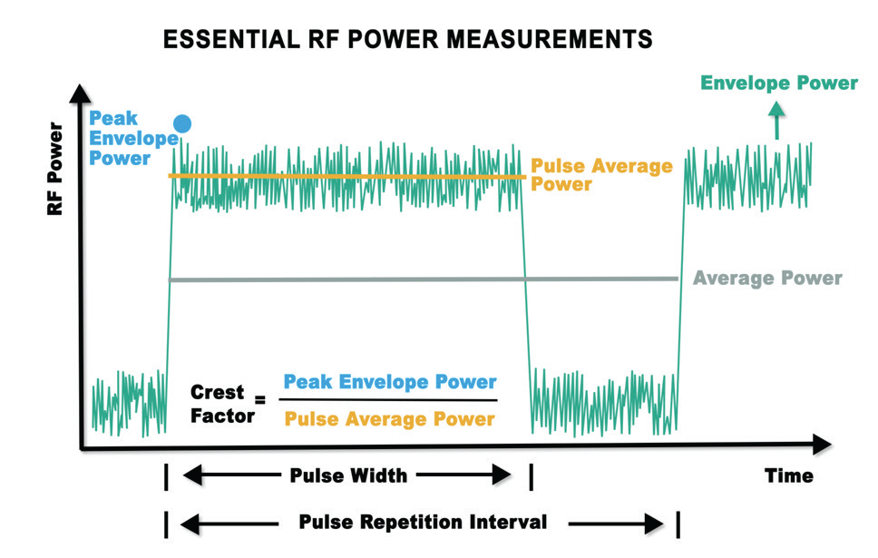 - 脈衝平均功率 (Pulse average power):僅針對訊號叢發的平均功率位準。