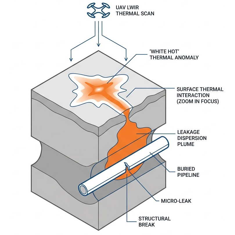 無人機長波紅外線(LWIR)於地下油氣管線洩漏偵測之物理熱對比剖面