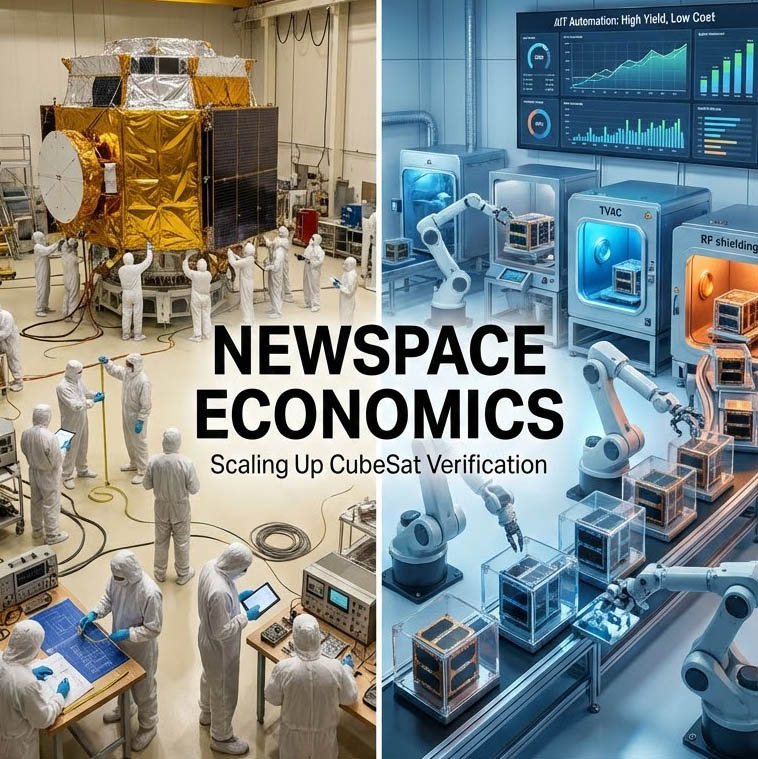 新太空的測試實驗室必須像現代化的汽車組裝線,您需要建立標準化的測試站(Test Benches),從零組件級的混頻器、低雜訊放大器(LNA),到子系統級的遙測與指令(TT&C)、電源模組,再到整星級的電磁相容(EMC)與熱真空測試。 - 自動化的必要性: