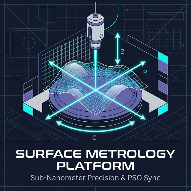 即使擁有了極致精密的機械架構,量測數據的真實性仍取決於通訊與控制系統,在高速連續掃描量測(On-the-fly Scanning)中,系統必須不斷地擷取干涉儀或共焦探頭的數值,並將其與當下的 X、Y、Z、C 軸座標進行綁定(Mapping)。