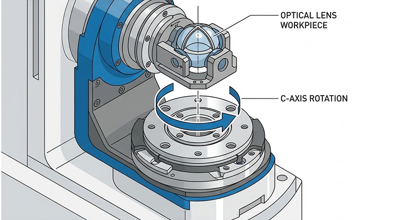 在圓柱對稱、球面或非球面鏡片的量測中,最核心的運動機構是負責帶動待測物旋轉的C軸(C-axis),在傳統的量測系統中,這個旋轉軸通常採用高等級的機械交叉滾柱軸承搭配蝸輪蝸桿或皮帶傳動,然而,在奈米量測的微觀世界裡,任何機械接觸式的軸承都存在無法克服的物理缺陷。