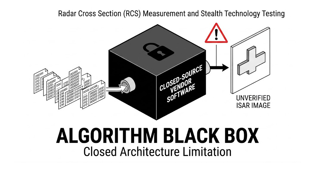 實務上的痛點在於,市面上許多商用的 RCS 量測軟體將這套校正矩陣以及後續的二維/三維 ISAR 影像生成演算法封裝為「黑盒子(Black Box)」。研發工程師只能輸入參數並接受軟體給出的最終圖表,卻無法檢視底層的近場轉遠場(Near-field to Far-field Transformation)數學推導過程。