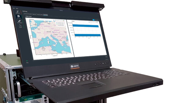 OHB Digital 推出的 GIDAS Portable 設備,其堅固的黃色外殼與獨立天線設計,凸顯了其專為野外或戰術環境設計的便攜性與強韌性。