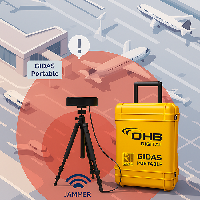 GIDAS Portable 可部署於關鍵區域,即時偵測如車載干擾器(Jammer)等威脅,並發出警示,確保周遭 GNSS 設備的運作安全。