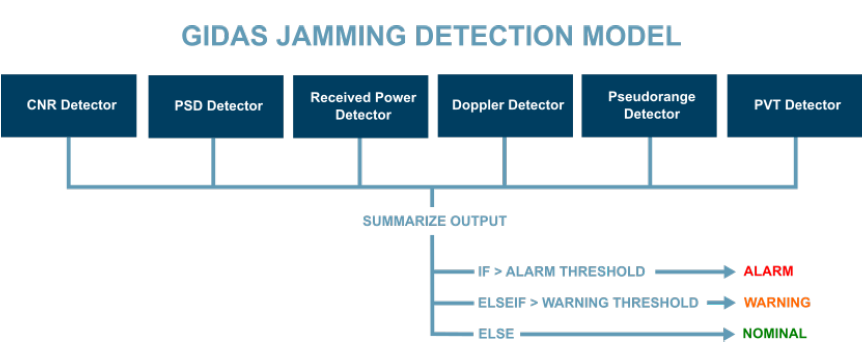 圖說:GIDAS 干擾偵測模型啟發 R&D 人員思考如何從載波雜訊比(CNR)、功率譜密度(PSD)、接收功率、都卜勒頻移、偽距及 PVT 解算等多個維度,綜合偵測干擾威脅。