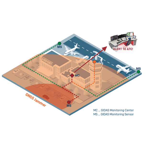 GIDAS Stationary 在機場等關鍵基礎設施的應用,透過多點部署實現對 GNSS 環境的全方位監控與干擾定位。