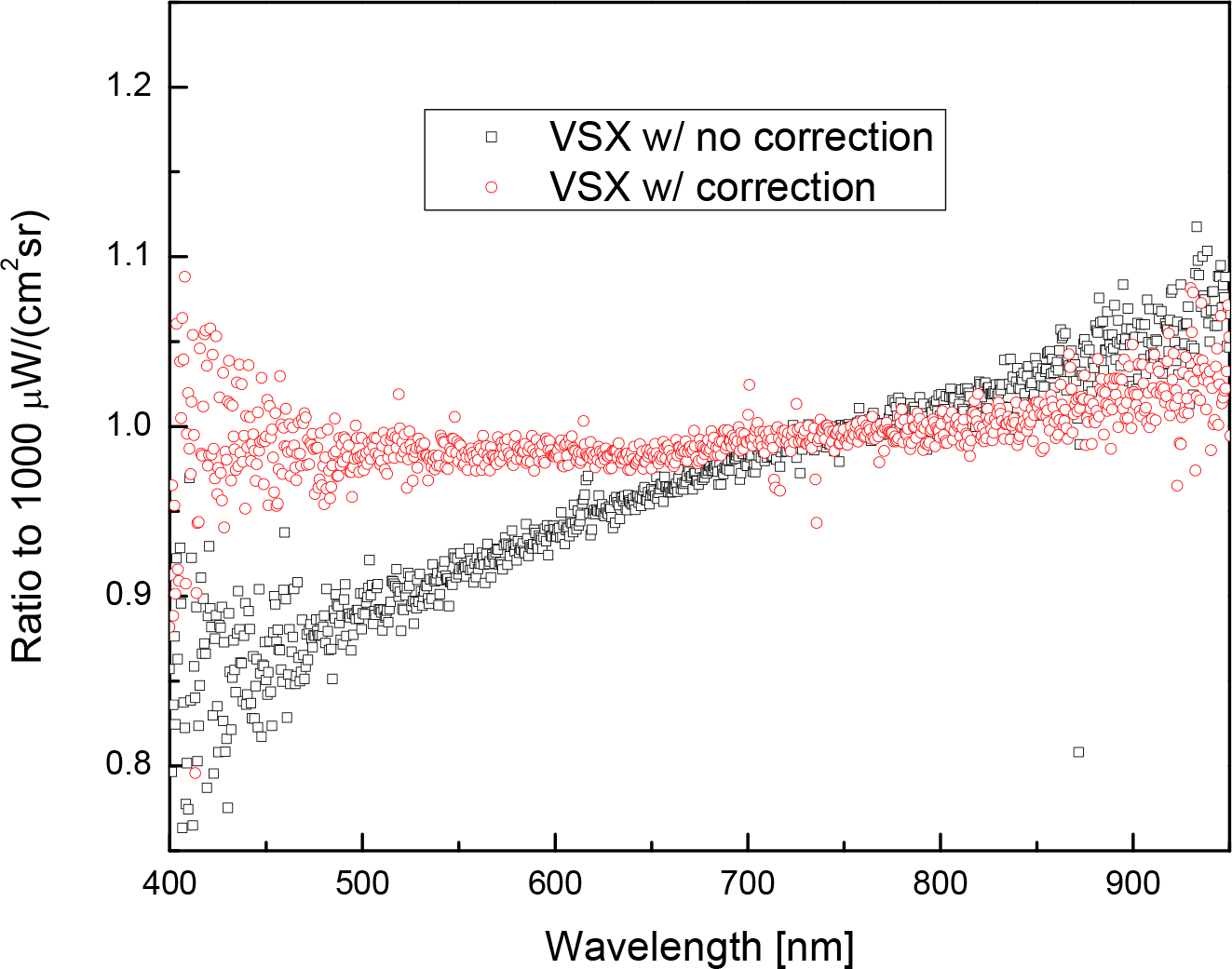 VSX-02 可見光源嚴格依循前文所詳細闡述的,包含對光源輸出光譜特性進行精密分析與校正,以及對其輻射亮度輸出進行準確標定的完整校準方法,在其設計規格所要求的輻射亮度輸出範圍,即從 1000 µW/(cm²sr) 的高亮度水平,一直延伸至 0.001 µW/(cm²sr) 的極低亮度水平,此範圍總共涵蓋了整整六個數量級之內,進行了全面的、系統性的校準操作與後續的性能特性驗證。實驗結果充分表明,從總體效果來看,透過對光源燈絲的加熱電流進行精密微調,以主動補償和校正因衰減或其他因素導致的輸出光譜變化的技術方法,取得了顯著且令人滿意的成功。
