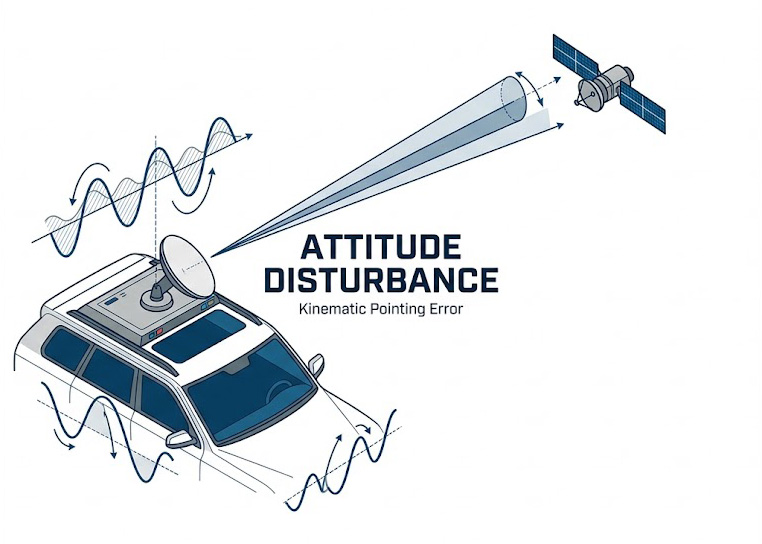 真實的 SOTM 應用場景極度險惡。安裝於越野車輛或海面船舶上的衛星終端,會無時無刻受到路面顛簸或海浪起伏的影響,產生劇烈的六自由度(俯仰 Pitch、滾轉 Roll、偏航 Yaw 以及三軸平移)擾動。