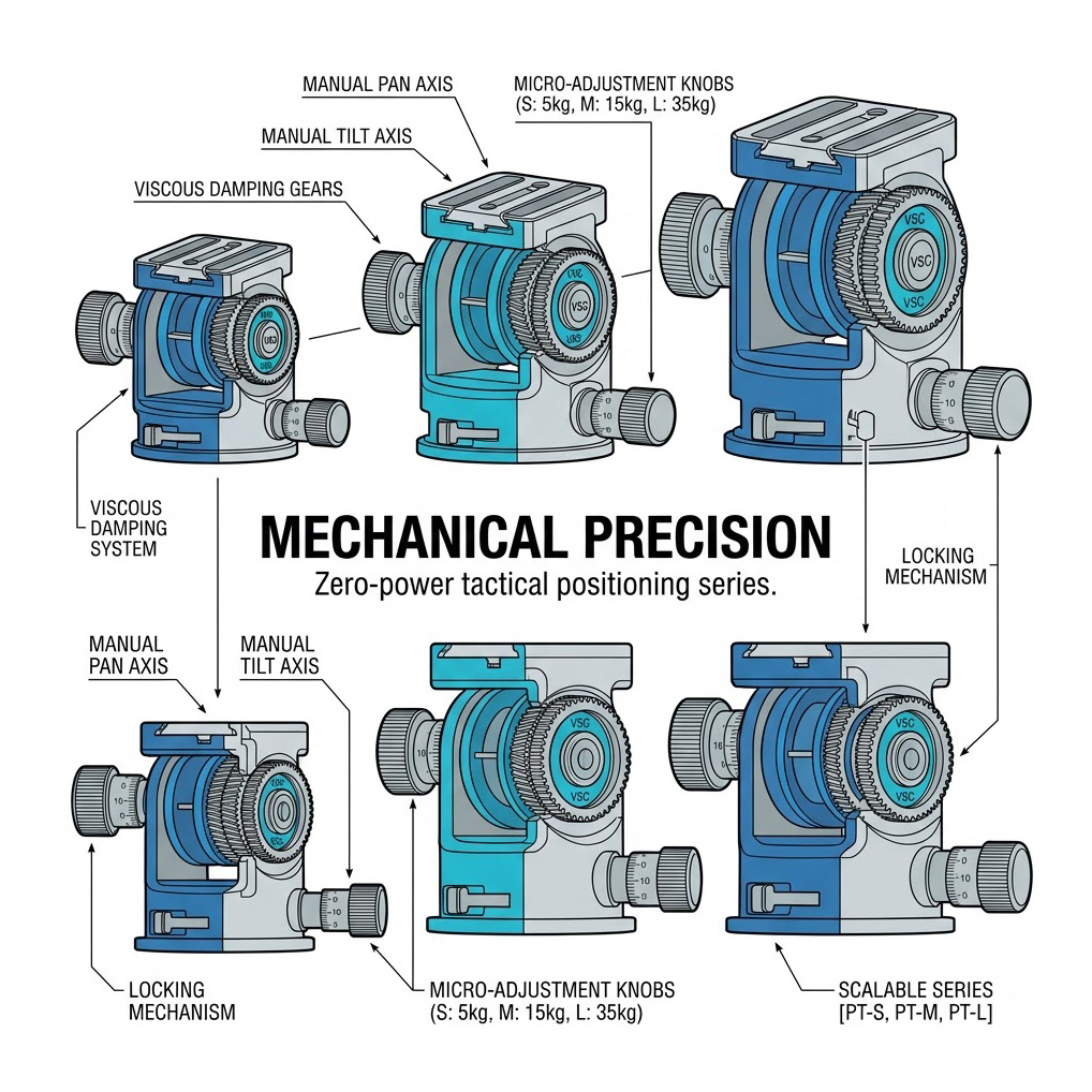 在當今的國防與高階測試領域中,遙控武器站與自動化光電追蹤系統佔據了大部分的技術版圖,這使得許多系統架構師在進行載台選型時,習慣性地將「機電自動化」視為唯一解,然而當戰術場景切換至需要長期潛伏的前線觀測哨、嚴格實施電磁輻射管制(EMCON)的特種任務,或是需要對超長距離雷射測距儀進行實驗室級別的「微距校正」時,純機械式的手動旋轉傾斜雲台(Manual Pan-Tilt Units)反而展現出機電系統無可取代的絕對優勢。