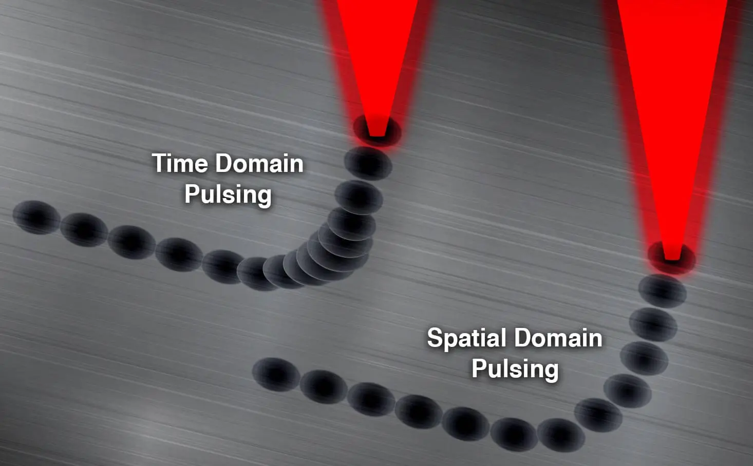 圖 5. 固定距離觸發的一大亮點是,速度的變化(加速度)並不會影響脈衝之間的雷射間距,這種類型的控制方式在高動態精密製程中,能有效提升零件品質與產能。