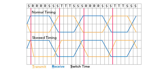 由於上行鏈路/下行鏈路切換發生在符元 (Symbol) 層級,負責在快速交換的上行鏈路和下行鏈路指派之間切換的元件,必須以適當的速度運作,尤其是在高頻應用中。