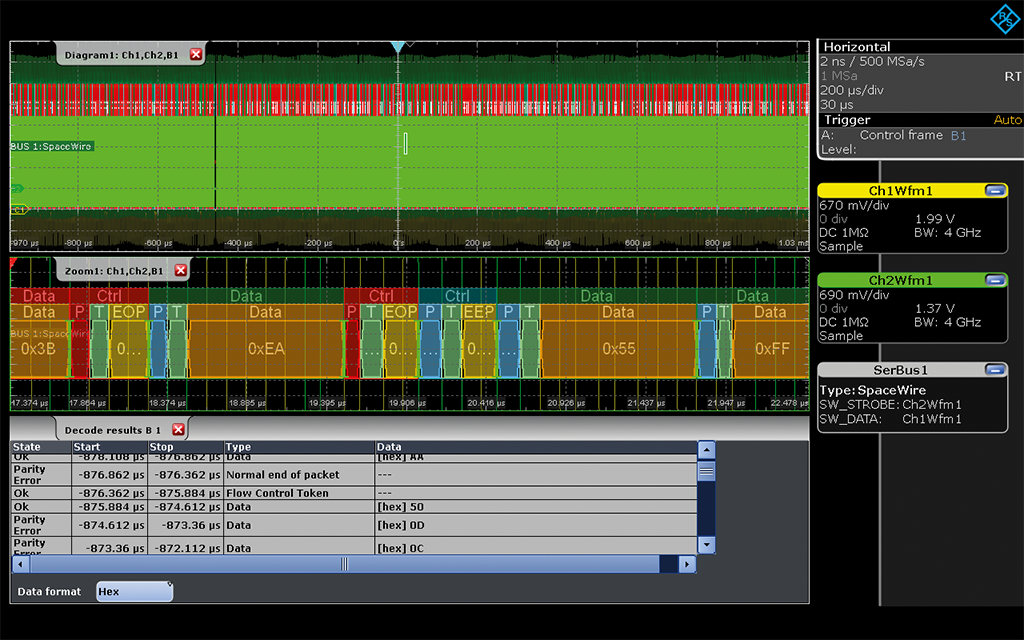 配備 R&S®RTP-K65 選配功能,R&S®RTP 即可輕鬆解碼與除錯 SpaceWire 串列協定