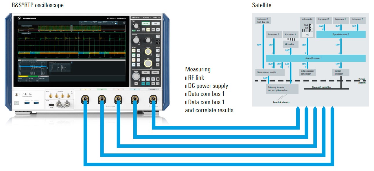 每一條 R&S®RTP 通道都能測量不同的領域(如 射頻連結、直流電源供應、數據通訊匯流排),並能將這些測量結果進行相關性分析。