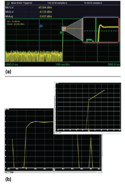 圖 5:為確保量測的準確性,功率計必須具備足夠的上升時間與解析度(a),以捕捉脈衝的真實樣貌。傳統功率計可能因性能不足而無法滿足需求 (b)。