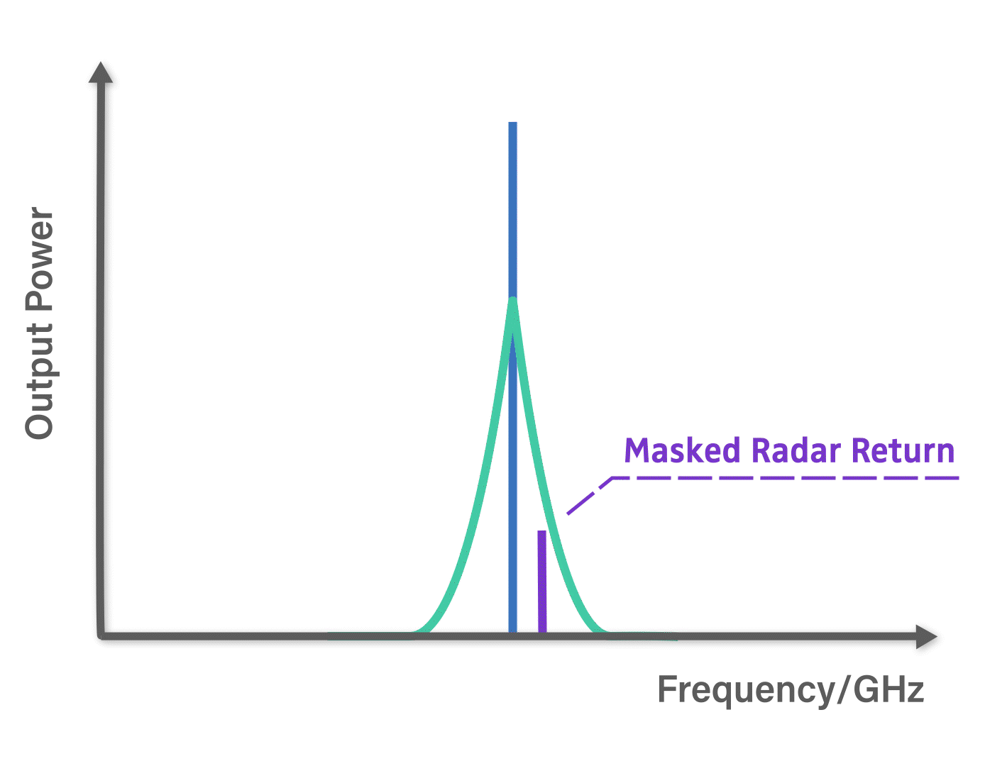 在都卜勒雷達系統中,過高的本地振盪器相位雜訊,可能會遮蔽掉近距離的雷達回波,舉例來說,移動緩慢、僅有些微都卜勒頻移的目標,或是反射功率較低的微弱訊號,都很容易被過高的相位雜訊所掩蓋;因此,在雷達系統中執行本地振盪器替代法時,選用的訊號產生器必須具備極其優異的相位雜訊效能。