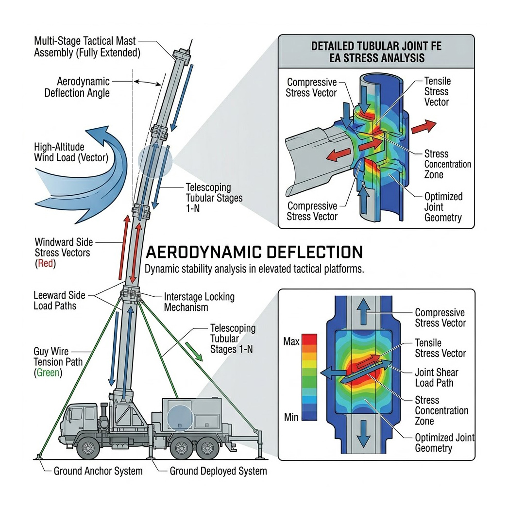 戰術升降桅杆的高空風載撓度與動態穩定性技術
