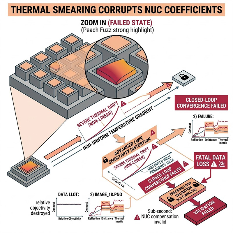 然而,微測輻射熱計的先天物理特性,在執行高精度的 NUC 運算時,引發了三大嚴峻的熱物理難題: