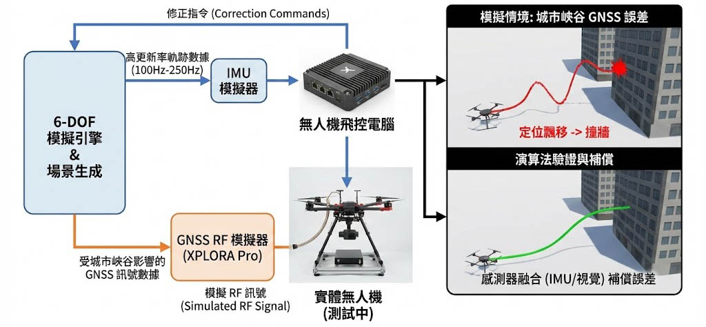 - 混合威脅模擬:系統可以在模擬城市多路徑的同時,疊加 干擾(Jamming) 或 欺騙(Spoofing) 訊號,這對於驗證警用或物流無人機在複雜電磁環境下的生存能力至關重要。