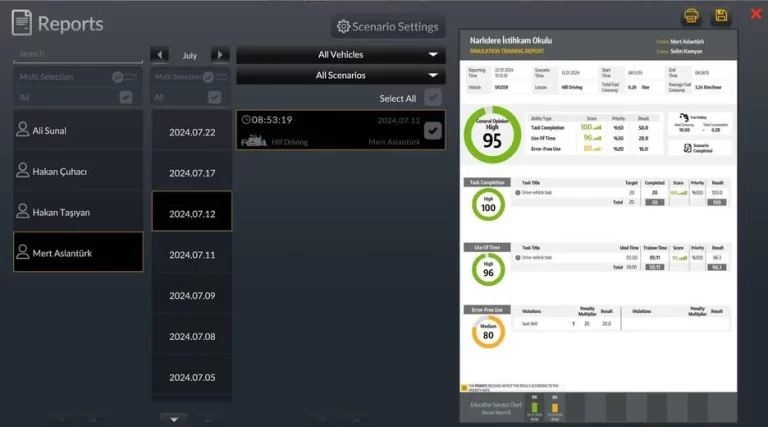 每次訓練都會被即時監控,捕捉任務準確度、時間掌握、燃油消耗和錯誤計數,這些數據支援結構化的評估、操作員反饋、技能追蹤以及整體績效分析。