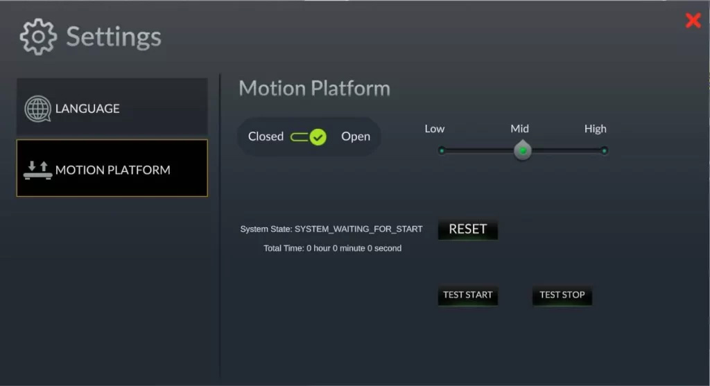 本系統建立在可擴充的架構上,支援 3自由度 (3DOF)、6自由度 (6DOF) 或靜態 (Static) 配置,系統提供即時的引擎與液壓反應模擬,確保在不同駕駛艙形式下皆能維持一致的性能表現,完全相容於實體控制器,如搖桿、踏板和轉向系統。