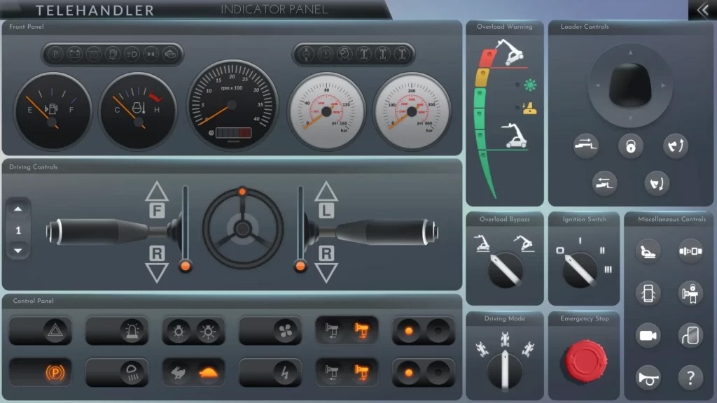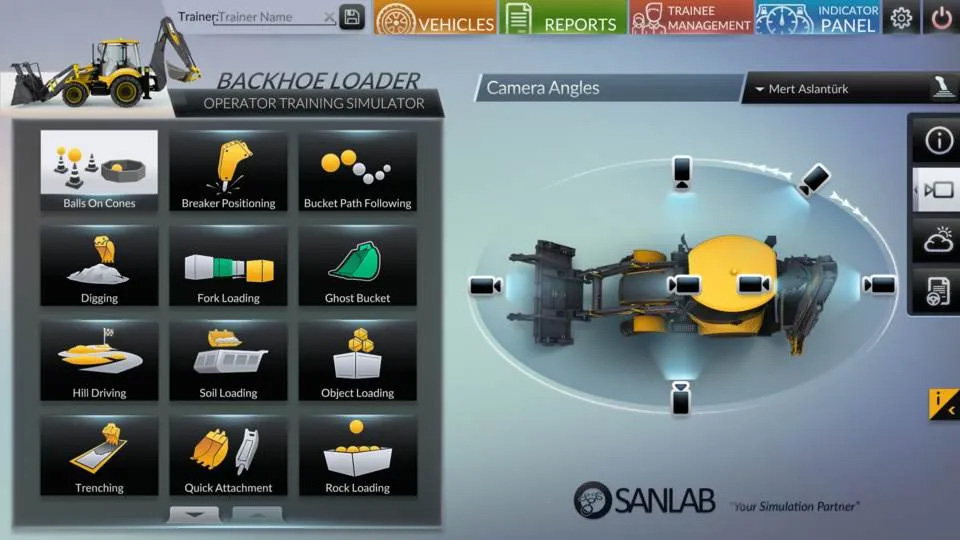 訓練從選擇挖掘機、挖掘裝載機或伸縮臂堆高機 (叉車) 開始,每個場景都專注於特定任務,如裝載、吊掛或挖掘溝渠,這有助於操作員在擬真條件下,提升控制力、時機掌握與設備操作效率。