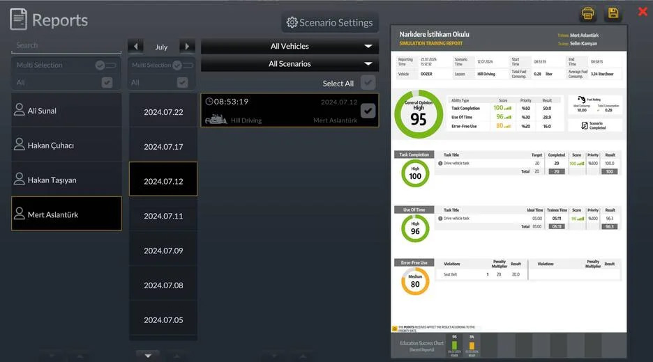 模擬器提供結構化的訓練情境,專注於在多變條件下的實際操作任務,每個情境都專注於提升特定技能,例如:控制精準度、時機掌握與設備操作效率。