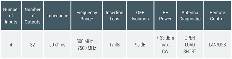 4X8 切換矩陣 - 非阻斷式設計 - 頻率範圍 20 MHz~8000 MHz