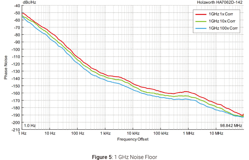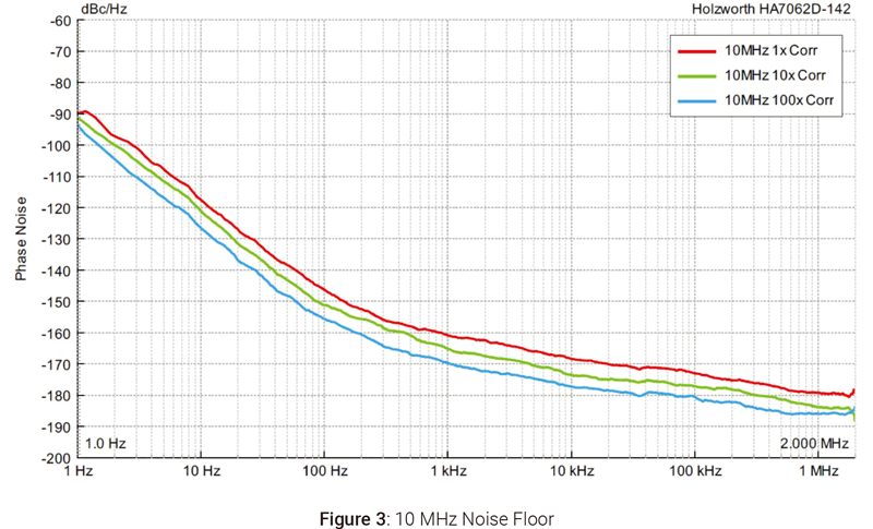 與 浩茲沃 (Holzworth) 其他產品一樣,市面上的競爭性相位雜訊分析儀通常會提供交叉相關可靠性指標(Cross Correlation Confidence Factor),但這其實只是基於當前量測資料的近似值,並不代表系統的真實底層雜訊;換句話說,這種方法僅提供一種估算,而非直接量測分析儀自身的雜訊表現。