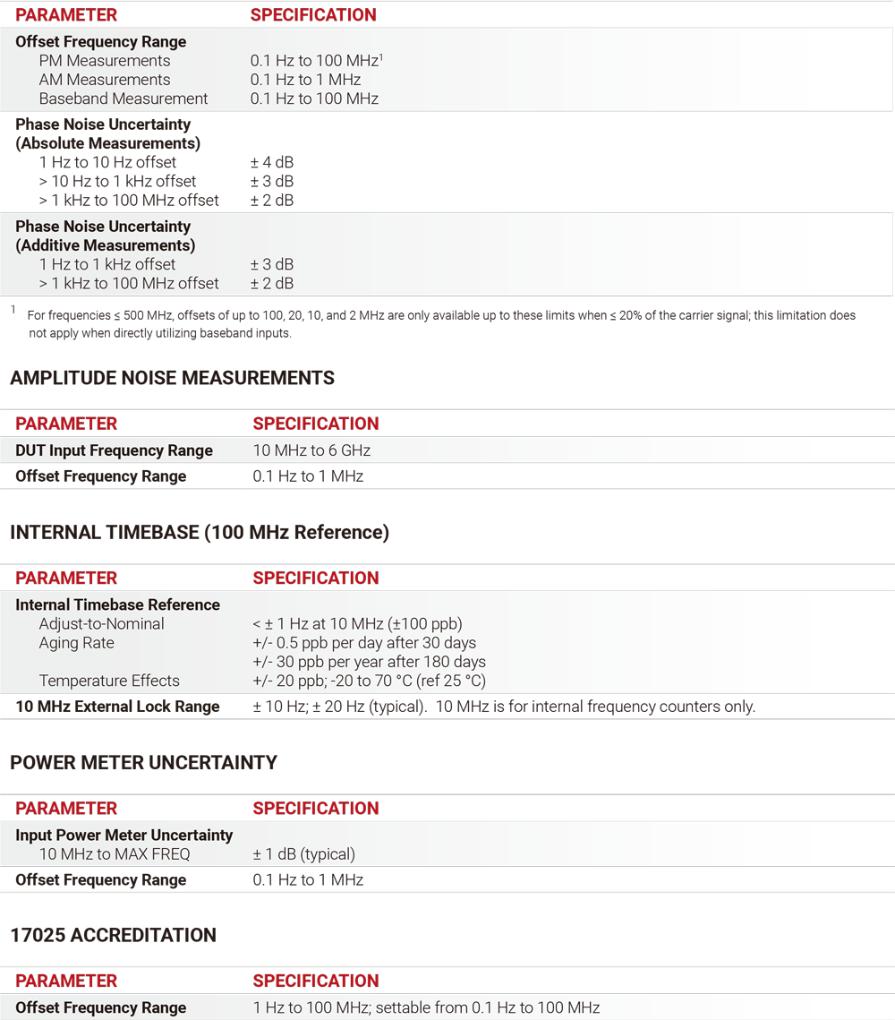 - 量測頻寬:0.1 Hz 至 100 MHz 偏移