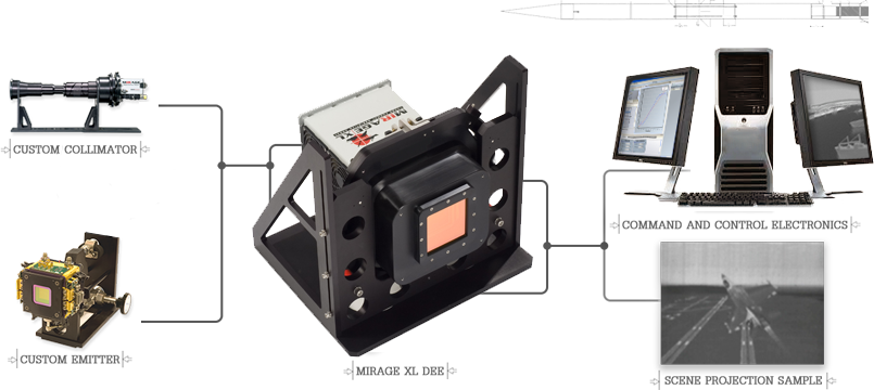 自 1999 年起,SBIR 便以前瞻視野推出了 MIRAGE™,這款劃時代的整合式動態紅外線場景投影系統,目的在於為飛彈尋標器、前視紅外線(FLIR)、反制措施模擬以及目標追蹤系統的硬體迴路(HIL)測試提供強而有力的支援。