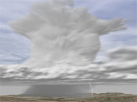 可產生最多五個體積風暴雲(Volumetric Storm Clouds),並模擬伴隨的暴雨帶(Rain Squall) 及隨機閃電(Randomized Lightning),重現逼真的雷暴氣候。 - 體積雲視線交叉測試(Volumetric Cloud LOS Intersection Queries):