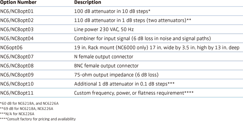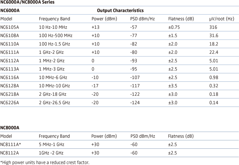 適用於 位元錯誤率 (BER) 和 訊號雜訊比 (SNR) 測試。 - NC8000A (高輸出功率):