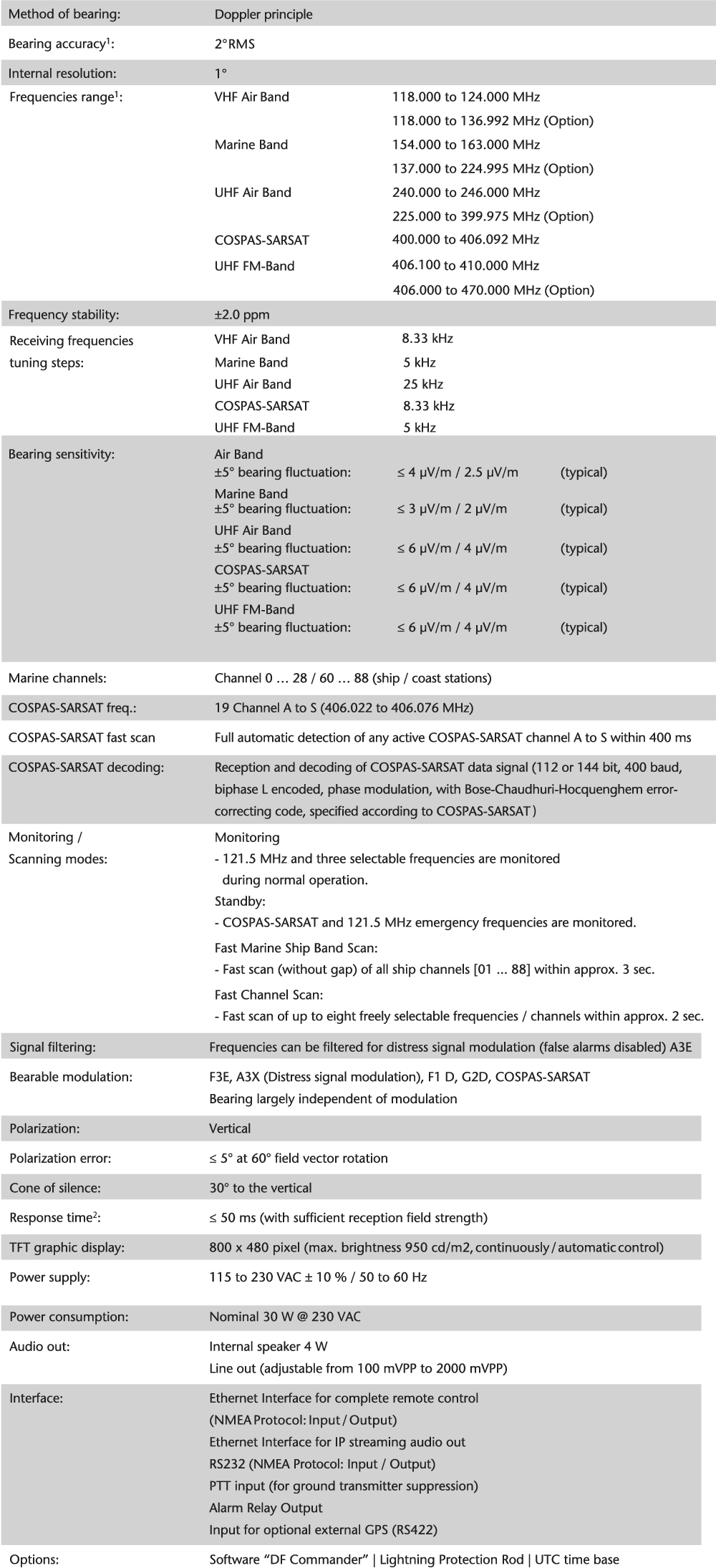 - 小型化、堅固且輕量的 DF 天線,便於安裝,並適用於海事氣候條件