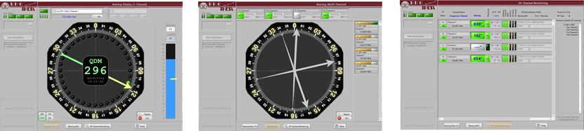 「Bearing Page(測向頁面)」設計簡潔直觀,並可調整羅盤方位與觀測塔視窗方向對齊,使操作者使用上更為便利;此外,軟體也支援即時監控所有連線通道的狀態,有助於技術人員對測向系統進行監測與維護。