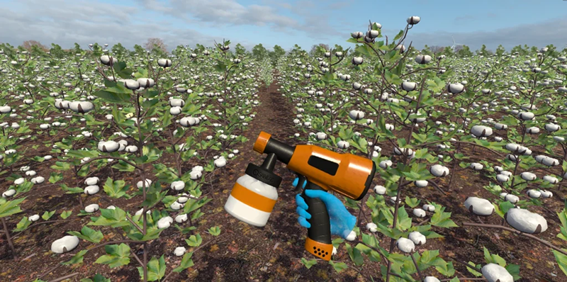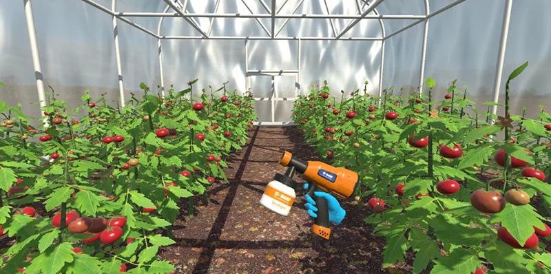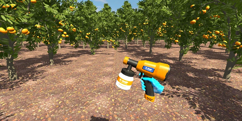 在虛擬實境(VR)環境中,體驗真實世界的農業噴灑技術。