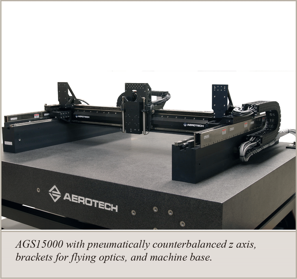 AGS15000 系統搭載氣動平衡 Z 軸,配備光束移動光學系統支架與機台基座,提供高精度運動控制能力