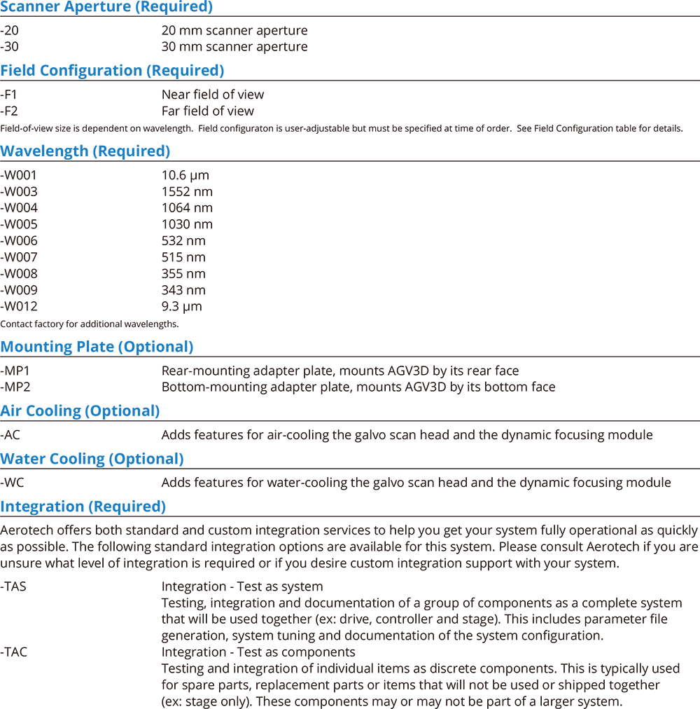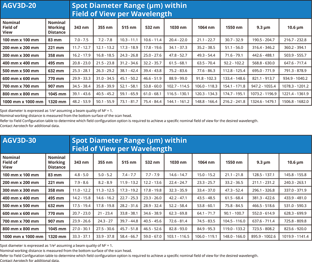 AGV3D 相容於多種雷射波長,讓您在為製程選擇合適的雷射時擁有更多彈性,依據您的製程需求,AGV3D 提供不同的光圈選項,以最小化聚焦光點尺寸並最大化動態性能。