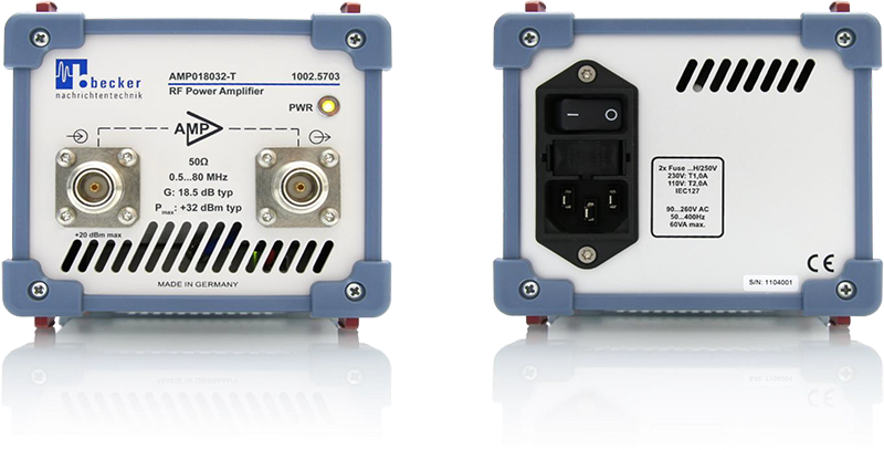AMP018032-T 為 Becker 推出的高線性桌上型放大器,採用 50 Ohm 技術,專為實驗室環境與高精度量測應用設計;具備寬頻操作、堅固機構設計與高穩定性輸出特性,能支援涵蓋多倍頻段的射頻處理需求;該機種支援寬範圍 AC 主電源輸入,前面板設有電源狀態 LED 指示燈,標配安裝腳座,便於工作台整合與長時間連續操作。