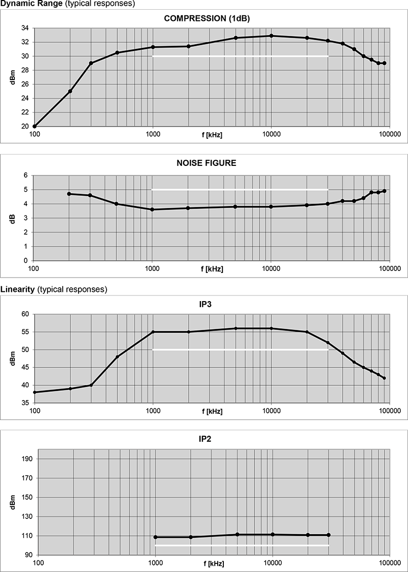 具備極高 IP2 與 IP3 效能,特別適用於需同時處理微弱射頻訊號與強干擾訊號之專業接收系統;即使在高動態範圍環境下,亦能維持輸出訊號之低失真表現,提升整體系統訊號解析度與靈敏度。