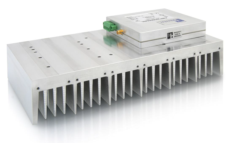 模組安裝於一體成型鋁質機殼中,可有效保護內部電路避免因撞擊、振動等外力造成的機械性損傷,同時提供卓越的電磁遮蔽效果,可有效隔絕環境中來自其他射頻源的 EMI(電磁干擾)影響,確保模組穩定輸出與系統整體射頻環境純淨性;標準模組設計需安裝於使用者自備之散熱器上以進行被動式熱管理,如需完整整合方案,亦可選配原廠對應之相容散熱器,簡化散熱設計流程並確保最佳熱性能表現。