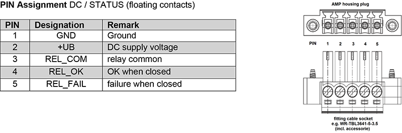 PIN 腳位定義:DC / 狀態(浮動接點)