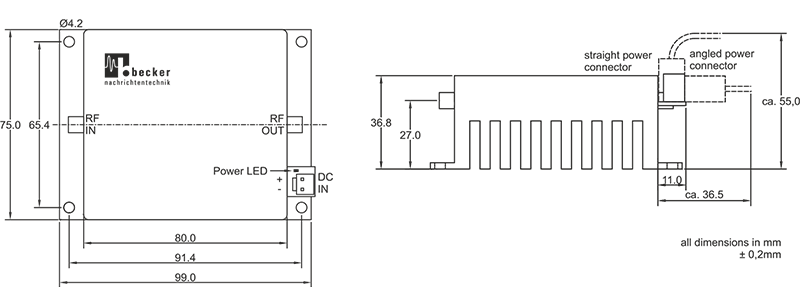 AMP5220031 為 Becker 所推出之小型化放大器模組,採用 50 ohm 技術設計,適用於專業級應用場景。其電氣與機械結構堅固,能提供長時間穩定運作效能,放大器於 5 至 2200 MHz 之多頻段範圍內皆能保持穩定操作特性。