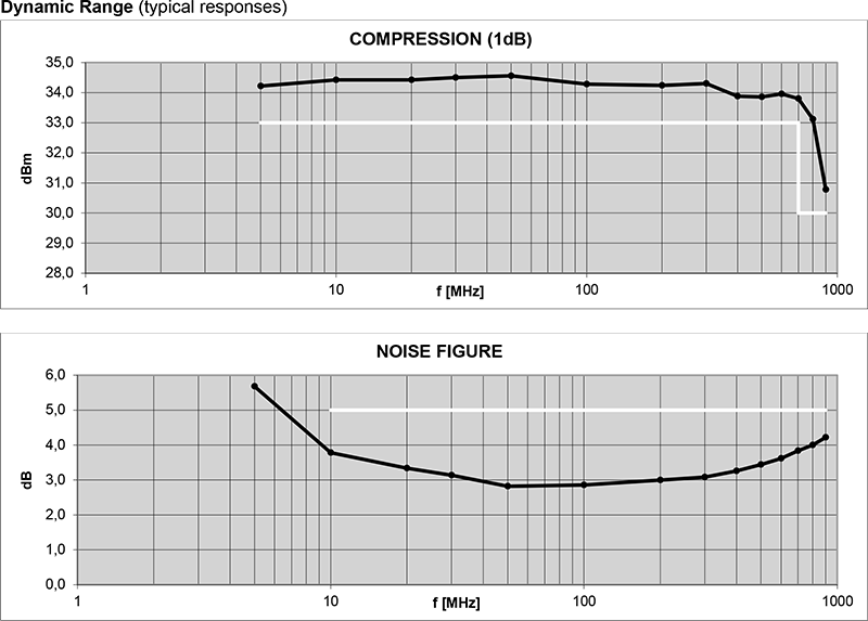 放大器具備極佳的 高 IP3(Third Order Intercept Point)性能,特別適用於需處理微弱射頻訊號與強干擾源並存的接收系統中,能有效抑制失真產生;輸入端整合高通濾波器,可濾除 VLF 與 HF 頻段中的非目標訊號,進一步提升接收品質。