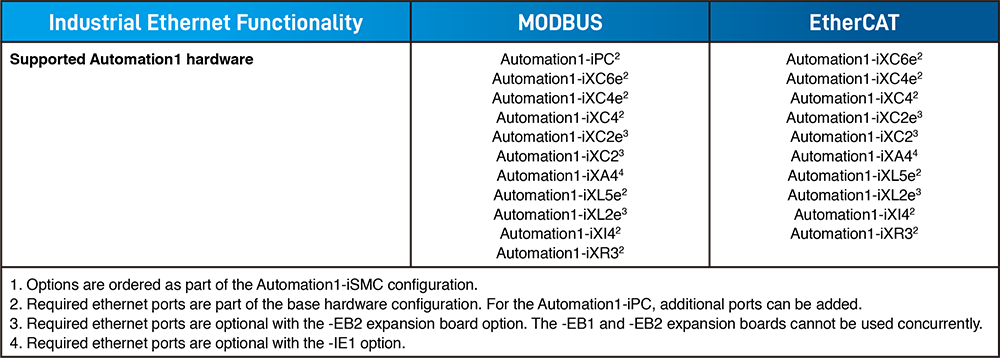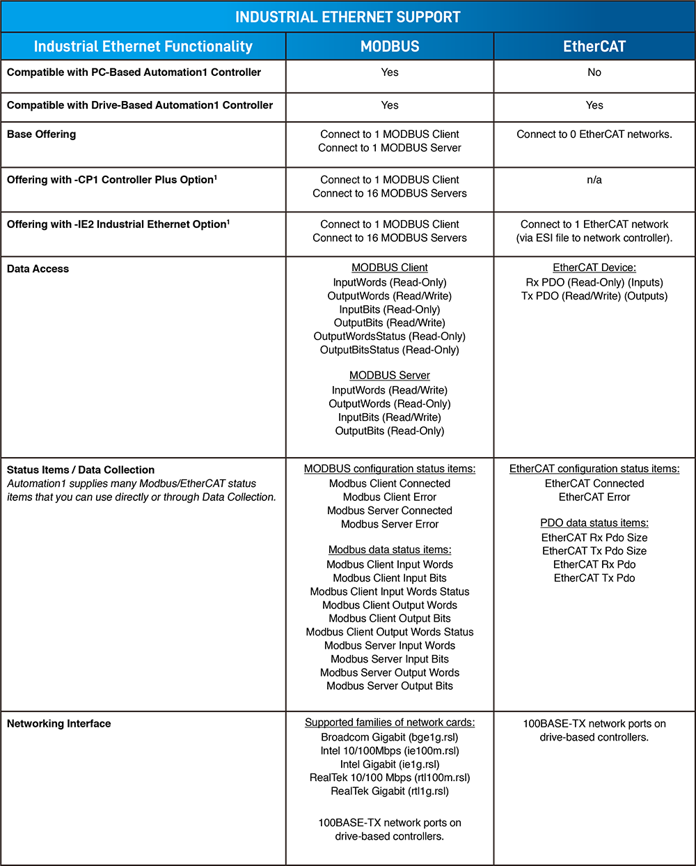 - 支援 Automation1 驅動器控制器的 EtherCAT 協定。