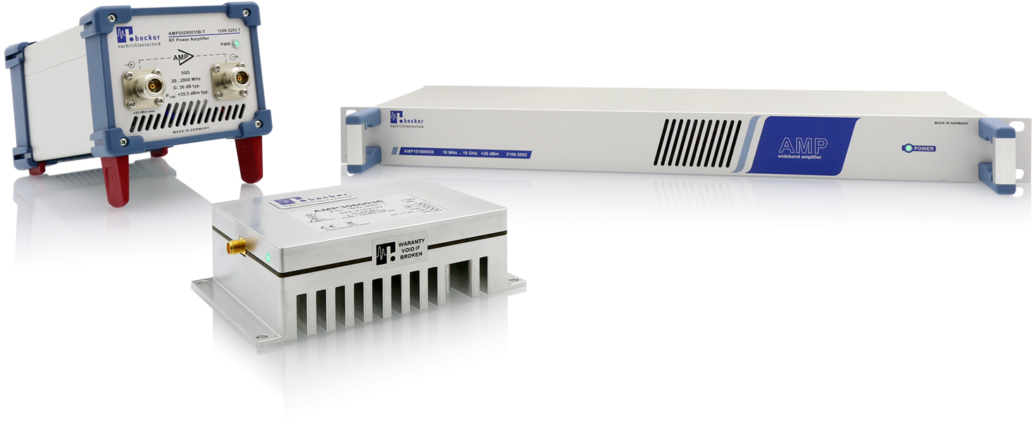Becker Nachrichtentechnik GmbH 提供完整系列的高效能寬頻射頻放大器(RF Amplifier),涵蓋從 HF、VHF、UHF 至 SHF,最高支援至 20 GHz,採用 50 Ohm 架構設計,產品針對高線性度、低雜訊、高動態範圍進行優化,全面支援多種主流無線通訊標準,包括蜂巢式行動通訊(如 GSM、UMTS、LTE、5G FR1)、衛星廣播、TETRA/BOS 公共安全系統、GNSS(全球導航衛星系統)、GPS、Wi-Fi(包含新一代 802.11 標準與 LTE-U 頻段)等。