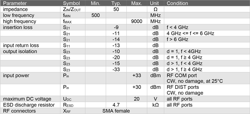 此模組具備低插入損耗、高隔離度與高線性度特性,適合用於空中介面模擬、射頻系統測試、通訊模組驗證等應用場景,並因其優異的電氣特性與模組化架構,可靈活配置於多模組平台中進行動態切換或自動化測試,滿足多頻段、多路徑環境下的複雜訊號分配與合路需求。